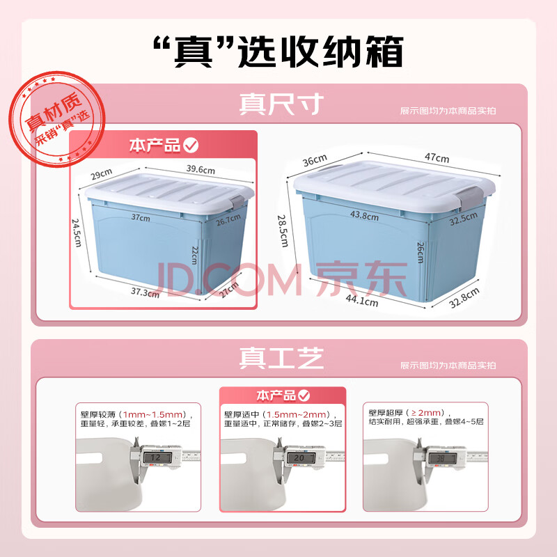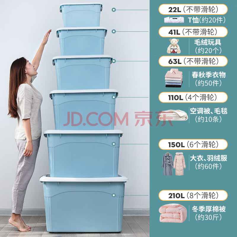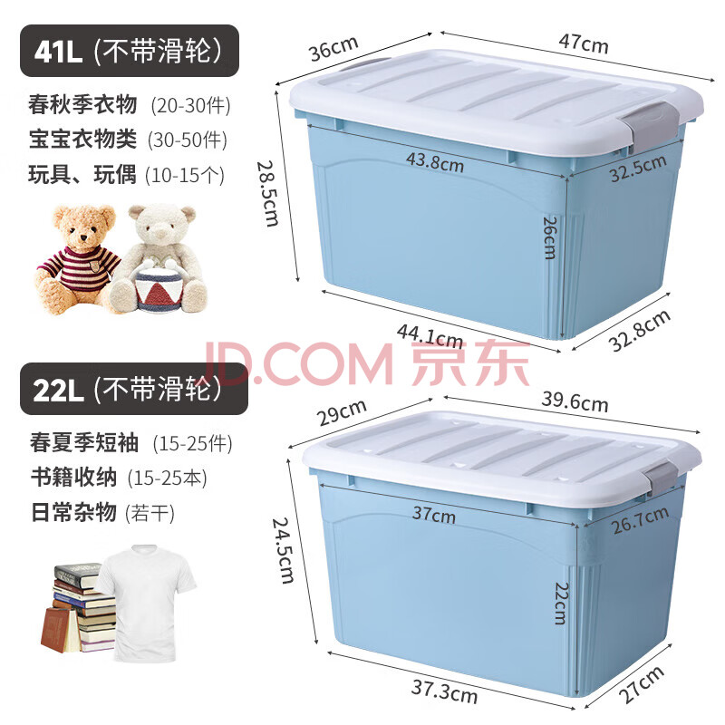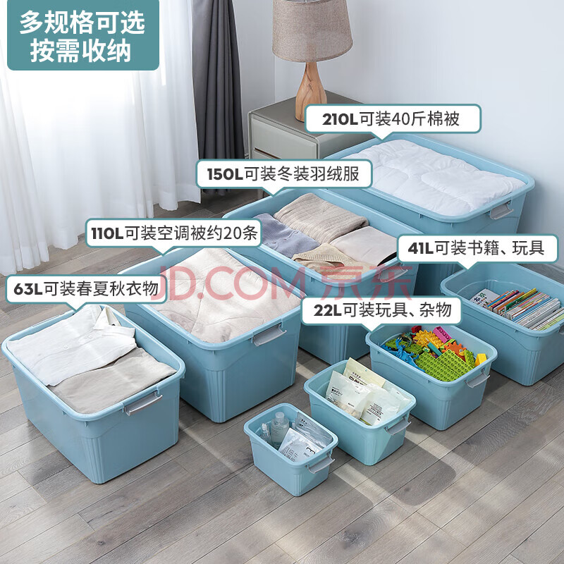 商品相册:百草园塑料衣物收纳箱22L 蓝色 3个装 不带轮第