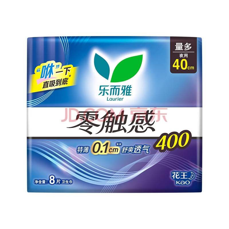 商品相册:乐而雅花王零触感特薄超特长夜用护翼型卫生巾40cm8片姨妈巾京东自营第
