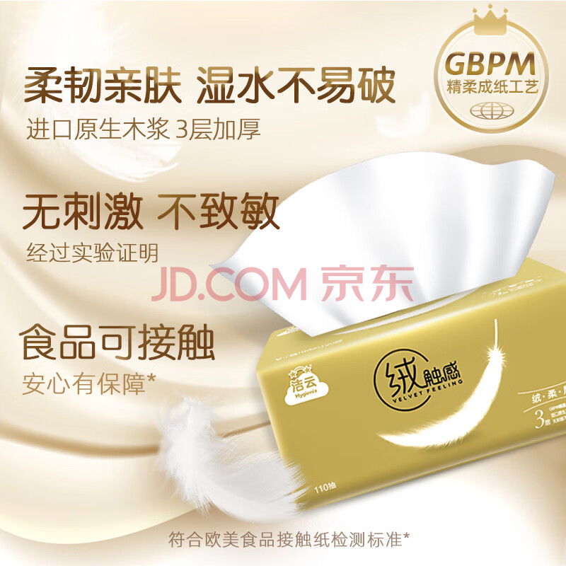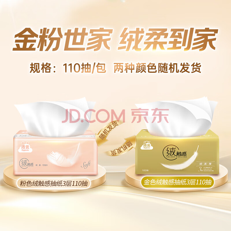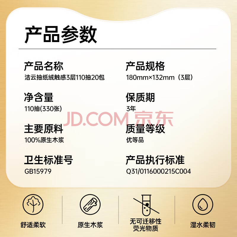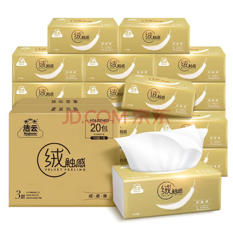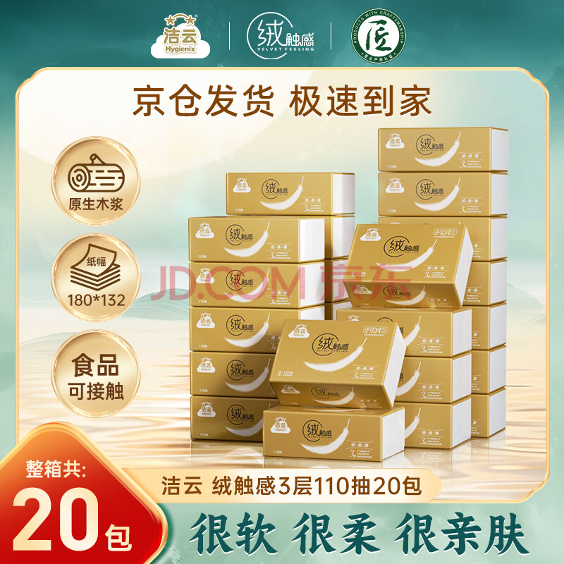 商品相册:洁云抽纸 绒触感3层110抽*20包整箱 S码 纸巾餐巾纸 软抽面巾纸抽第