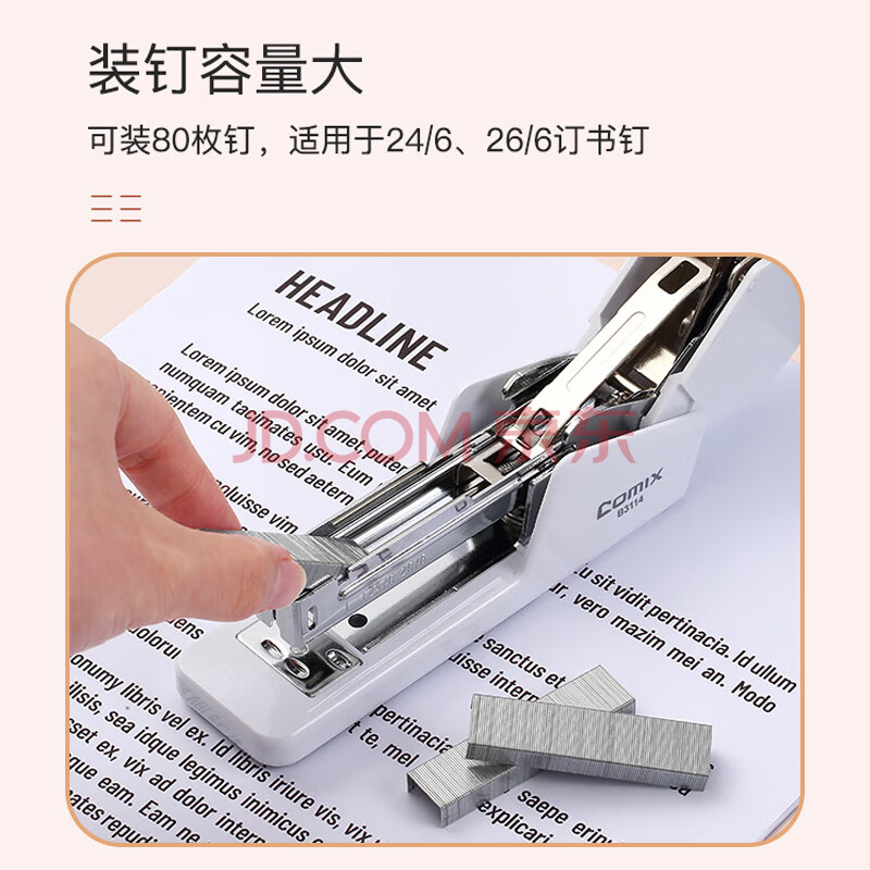 商品相册:齐心(COMIX)省力订书机/订书器 莫兰迪色 20页 适用24/6、26/6钉 办公学习用品 象牙白B3114第