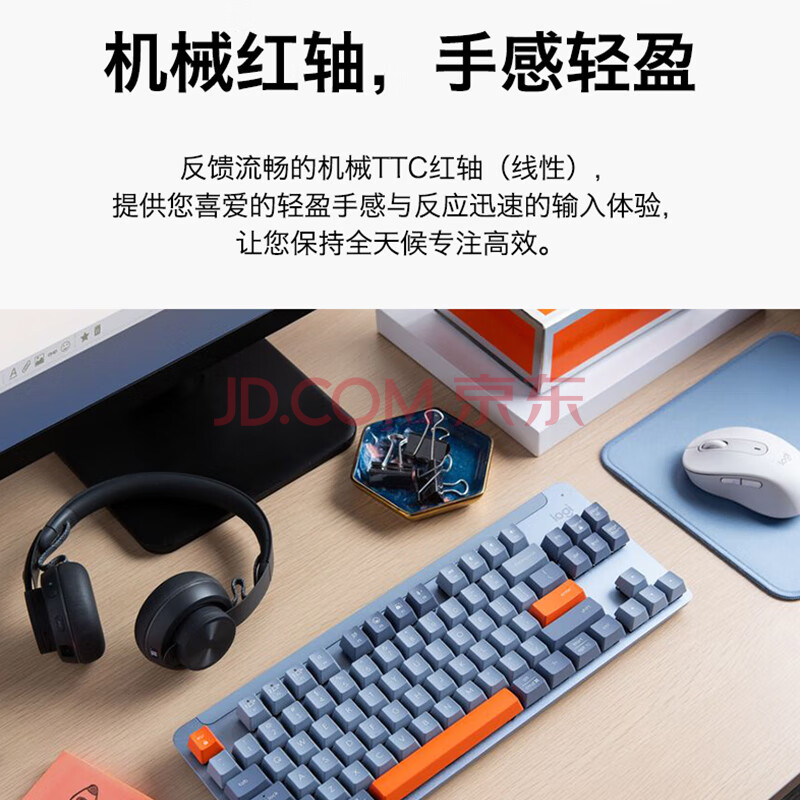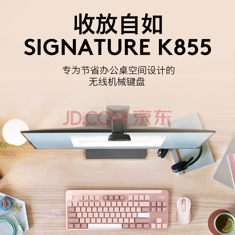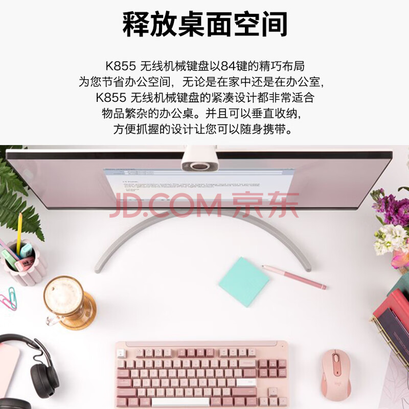 商品相册:罗技(Logitech)K855无线机械键盘 优选系列 无线蓝牙键盘 游戏办公键盘 84键 粉色 TTC红轴 带Logit Bolt接收器第