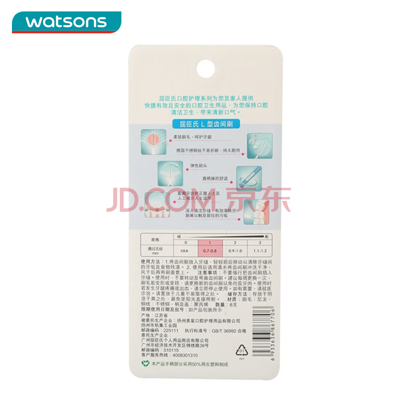 商品相册:屈臣氏 L型齿间刷6支后排牙间刷牙缝刷牙齿清洁牙尖刷新老包装随机发货第