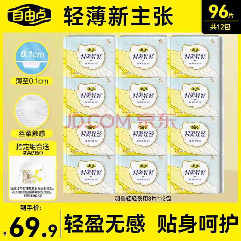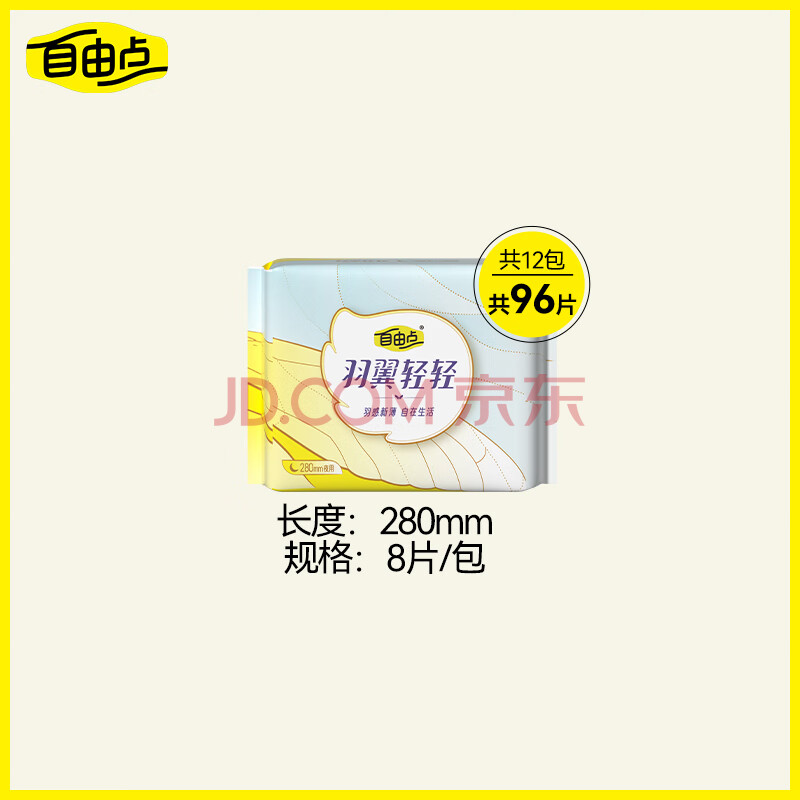 商品相册:自由点羽翼轻轻卫生巾赵露思同款超薄棉柔姨妈巾夜用组合280mm12包96片第