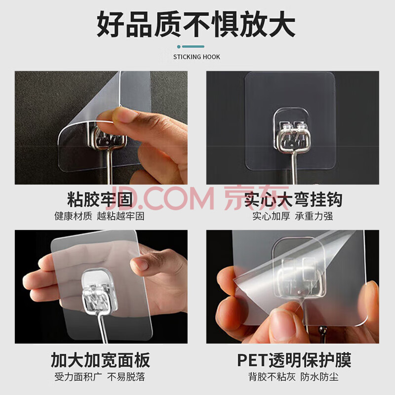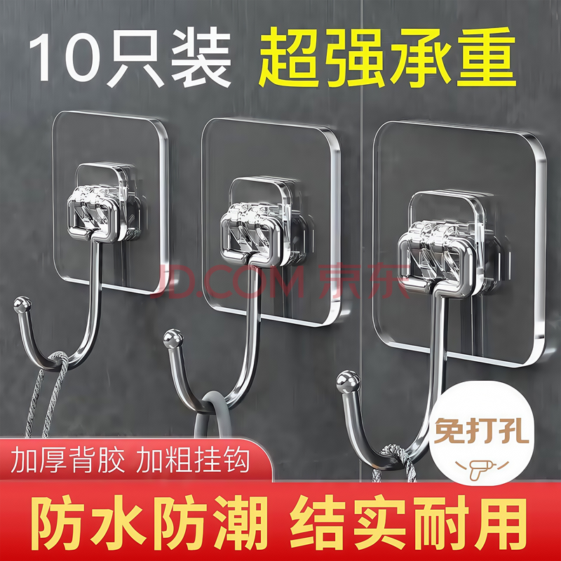 商品相册:星坊 挂钩免打孔挂衣钩衣帽钩浴室卫生间粘胶钩强力承重 10只装第