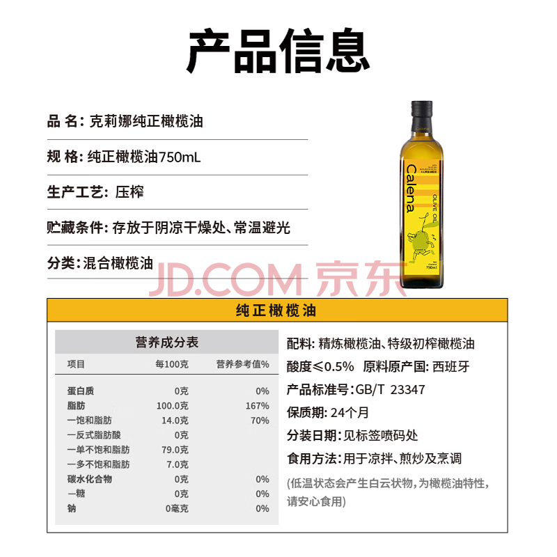 商品相册:克莉娜【保真橄榄油】压榨纯正橄榄油750ml第