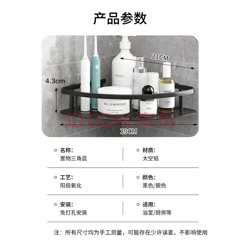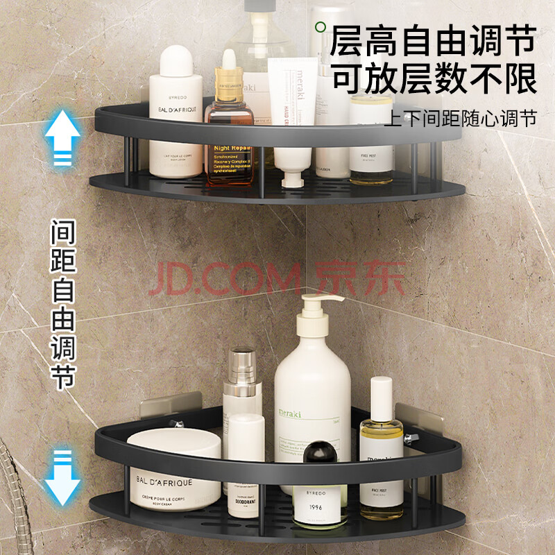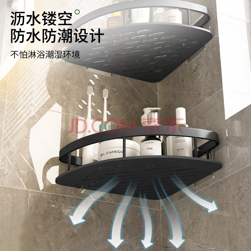 商品相册:馨沛太空铝浴室置物架免打孔卫生间洗漱台墙角厕所厨房壁挂件三角架篮第1张/共4