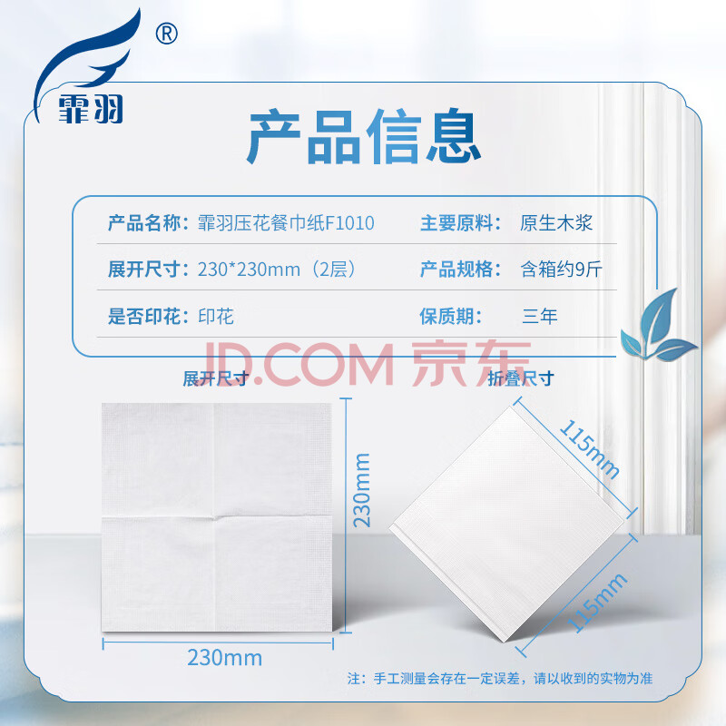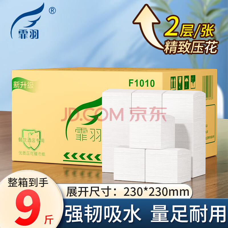 商品相册:霏羽餐巾纸9斤含箱正方形双层平板纸餐厅餐饮店纸巾面巾纸F1010第