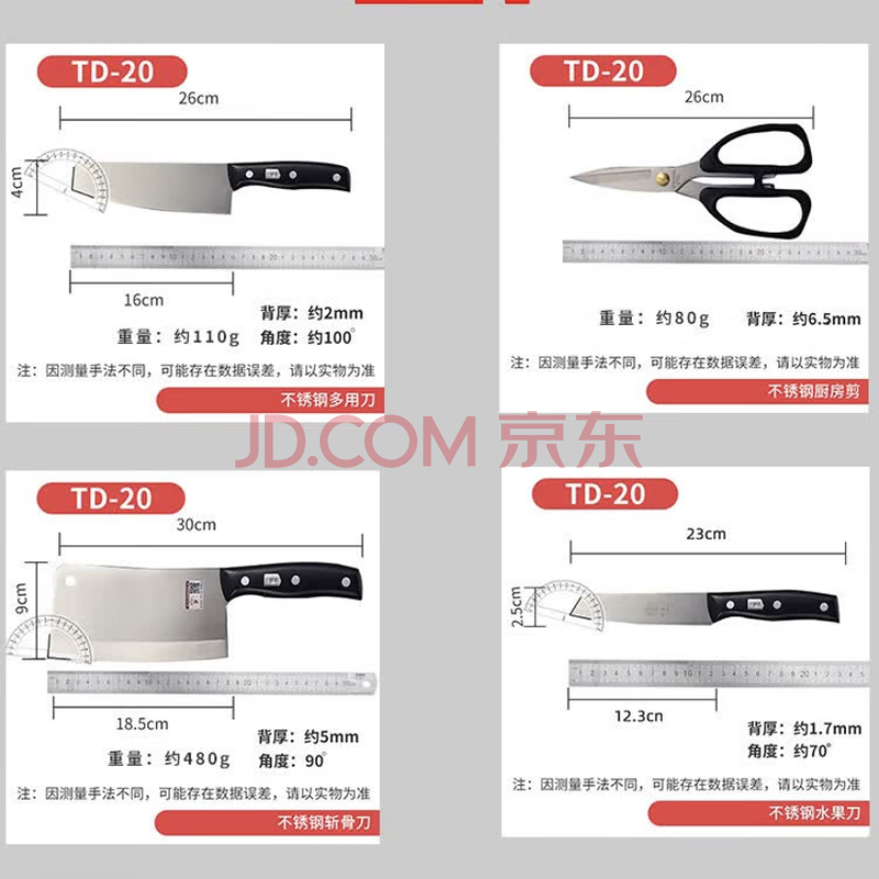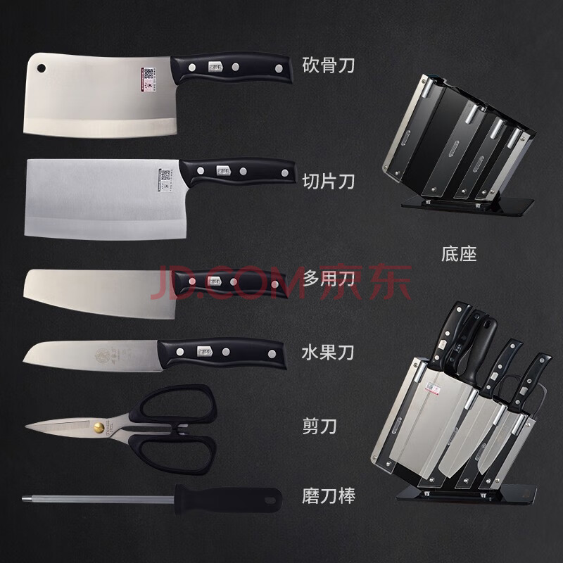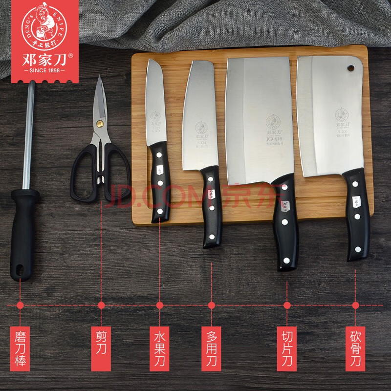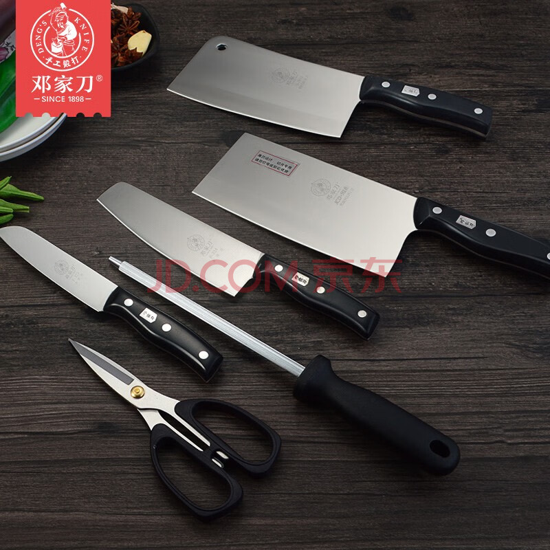 商品相册:邓家刀 传统锻打高硬度不锈钢菜刀 家用锋利七件套套装刀 TD-20第