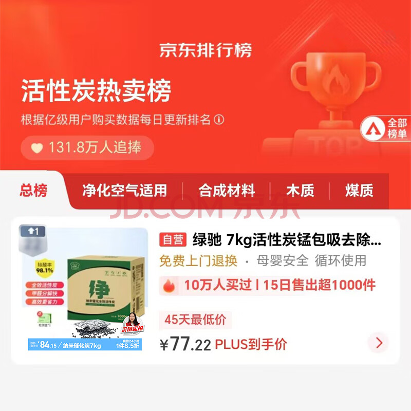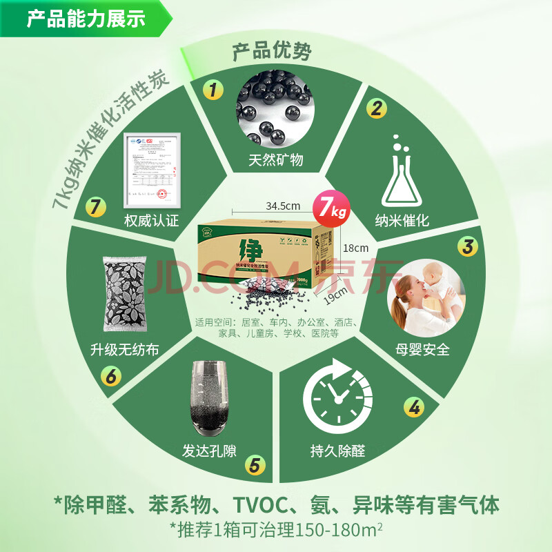 商品相册:绿驰 7kg活性炭锰包吸去除甲醛清除剂新房车碳包除异味苯光触媒竹炭包第