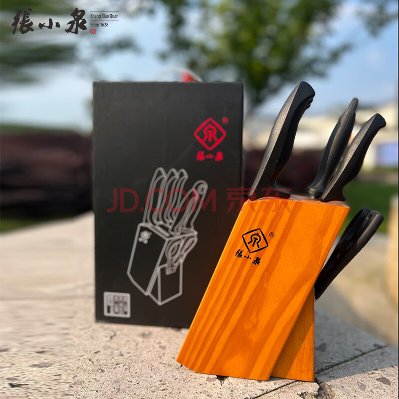 商品相册:张小泉 刀具七件套 厨房不锈钢刀具 斩切刀/水果刀/剪刀/小厨刀/磨刀棒/底座 简秀系列套装第