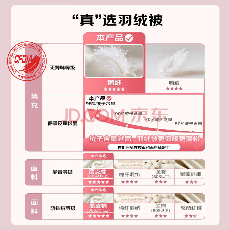商品相册:斯诺曼高档100支进口95%白鹅绒羽绒被芯空调被夏凉被子2.2*2.4m充320g灰第