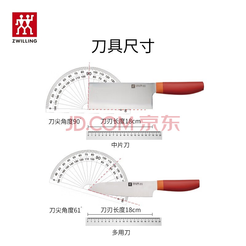 商品相册:双立人(ZWILLING)刀具套装Now S菜刀水果刀切片刀切菜刀中片刀多用刀2件套 石榴红第