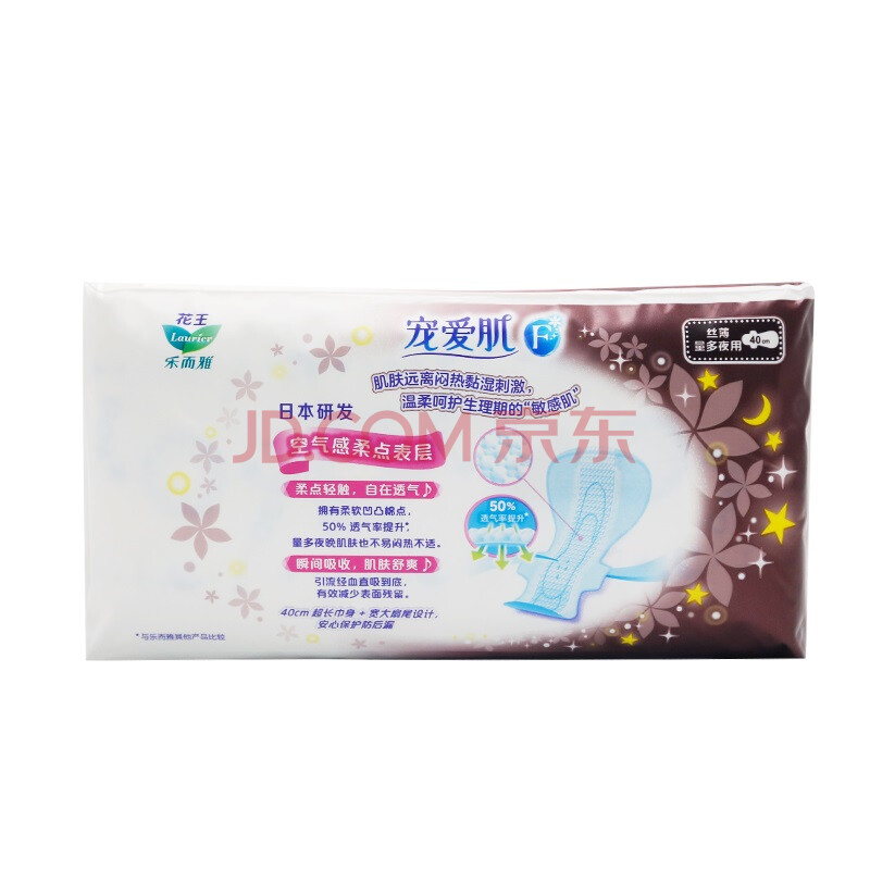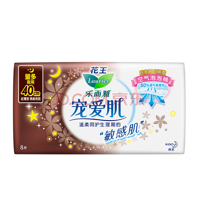 商品相册:乐而雅花王宠爱肌丝薄柔棉透气量多夜用卫生巾40cm8片姨妈巾京东自营第