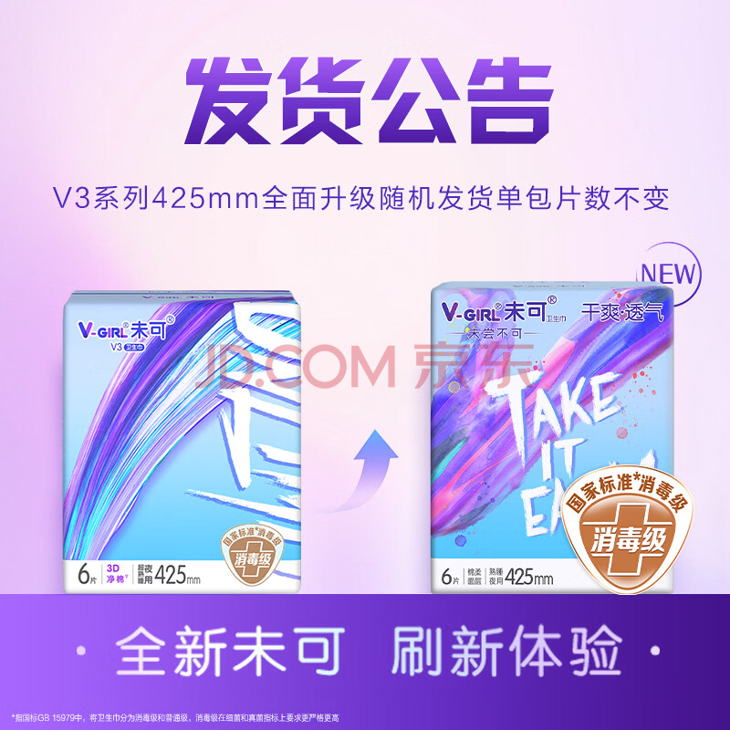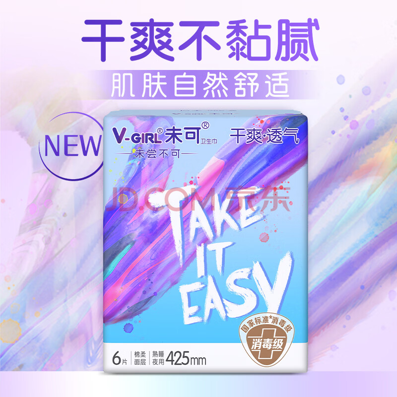 商品相册:未可消毒级卫生巾V3熟睡夜用425mm*6片量多 京东自营第