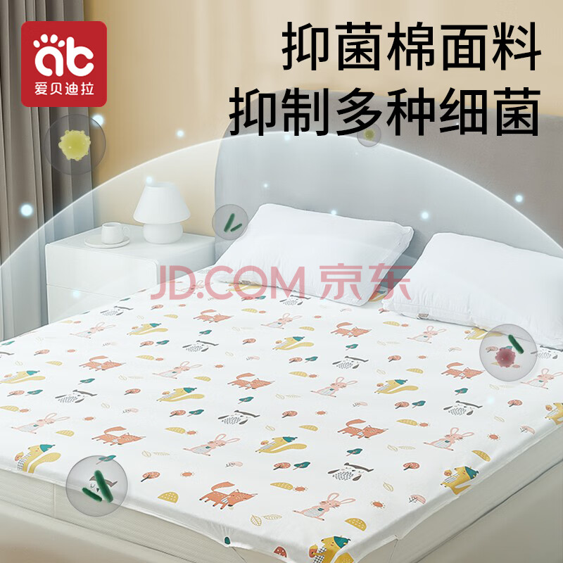 商品相册:爱贝迪拉 婴儿隔尿垫大号可洗成人护理垫抑菌纯棉透气床单姨妈垫180*200第