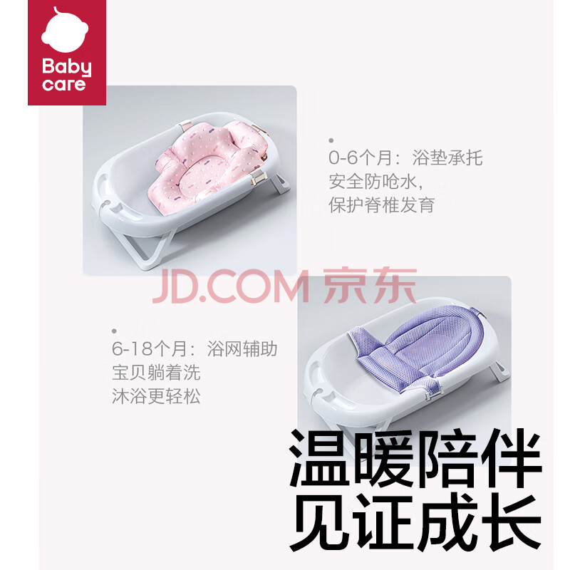 商品相册:babycare儿童大号可折叠浴盆2.0适配浴垫 宝宝沐浴帮手可坐可躺 卡尔斯蓝第