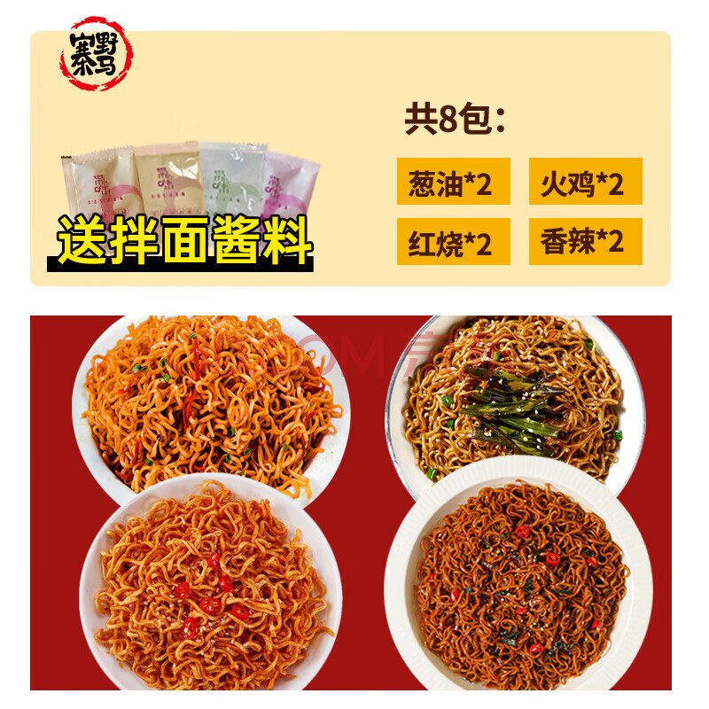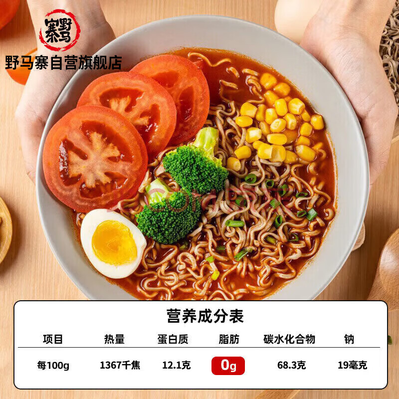 商品相册:野马寨荞麦面0零脂肪方便面100%泡面健身代餐速食带调料包无糖精60g*8袋第