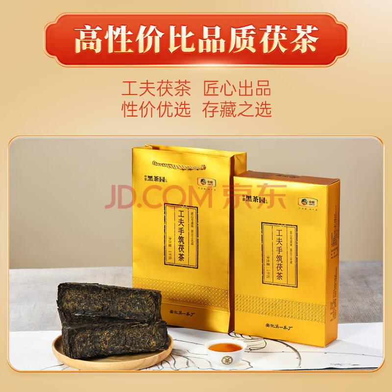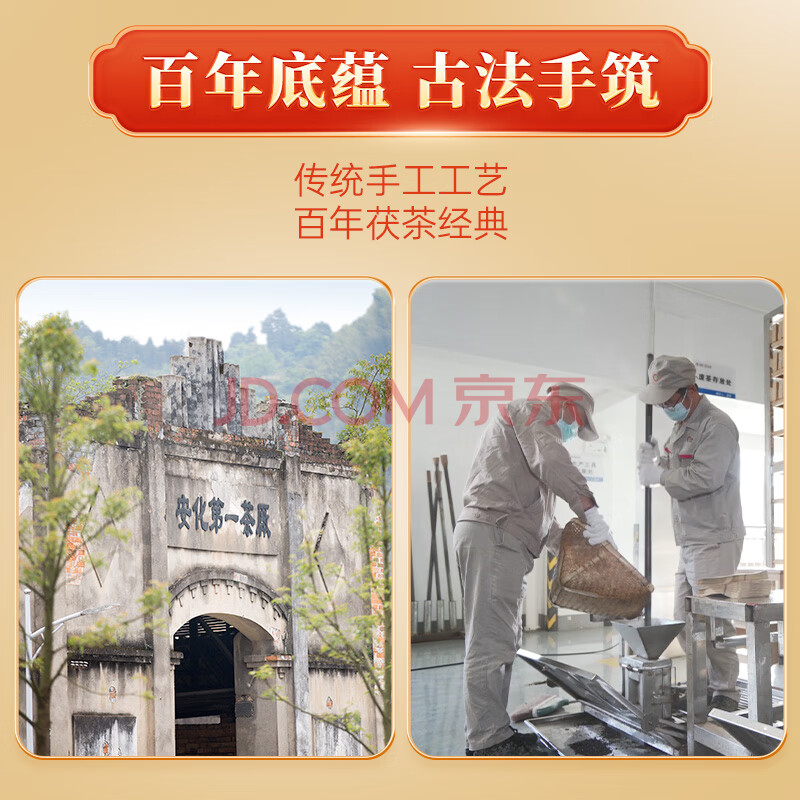 商品相册:百年木仓中粮中茶茶叶 安化黑茶 金花茯砖茶 工夫手筑1kg 茶叶自己喝送礼第