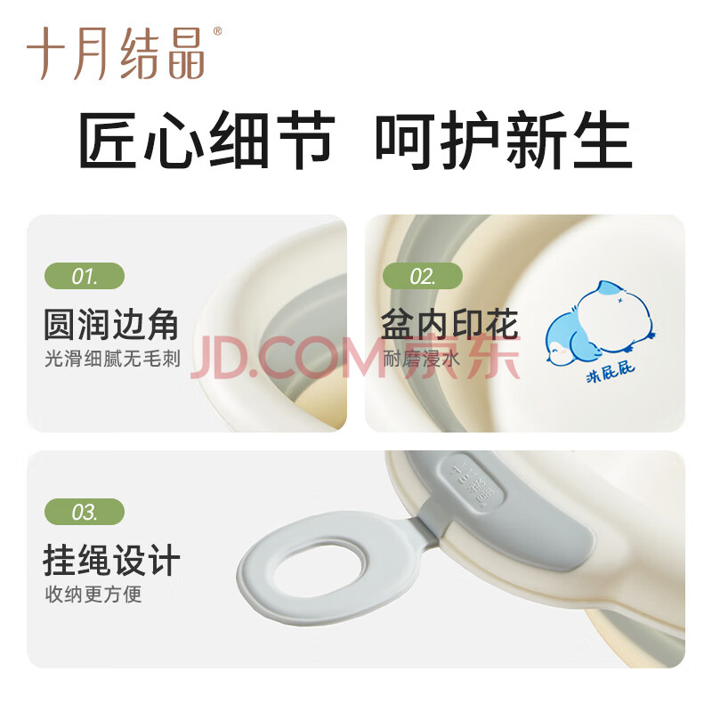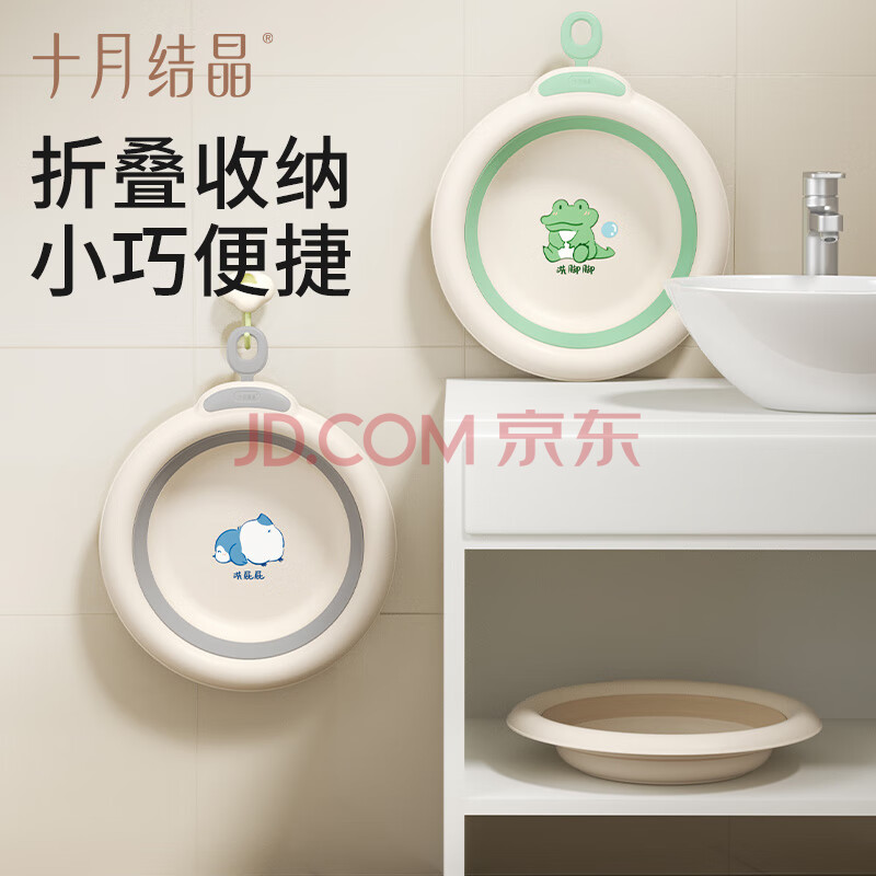 商品相册:十月结晶婴儿洗脸盆初生宝宝盆洗脚洗pp盆儿童可折叠盆浅绿1只第1张/共8