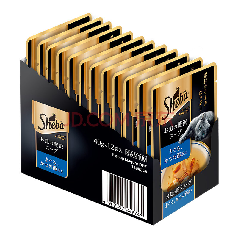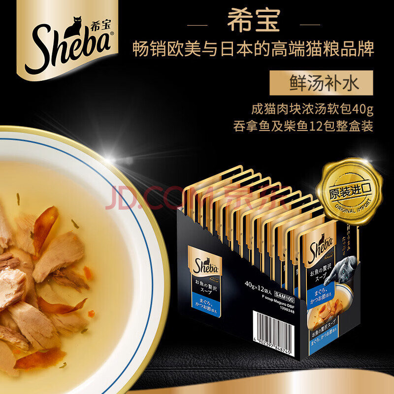 商品相册:希宝原装进口猫粮肉块浓汤软包吞拿鱼柴鱼成猫40g*12整盒装黑金妙鲜包第