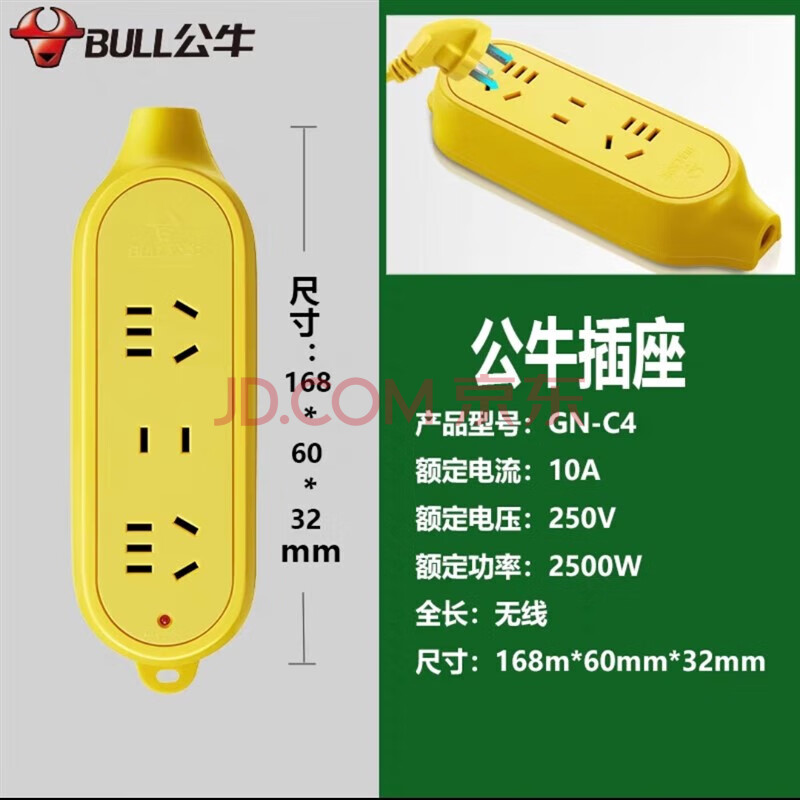 商品相册:公牛(BULL)GN-C4 新国标3插位工程摔不烂插座插排插板 无线 需自行配线第