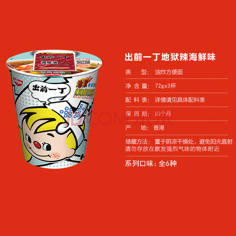 商品相册:出前一丁日清 进口方便面 地狱辣海鲜味杯面72g*3杯 泡面拌面早餐零食中秋第