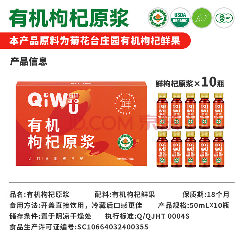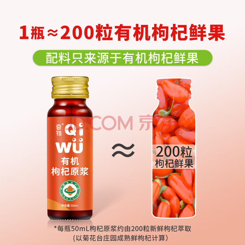 商品相册:奇物 宁夏有机枸杞原浆500mL(50mL*10瓶)红枸杞原液汁节日送礼礼盒第
