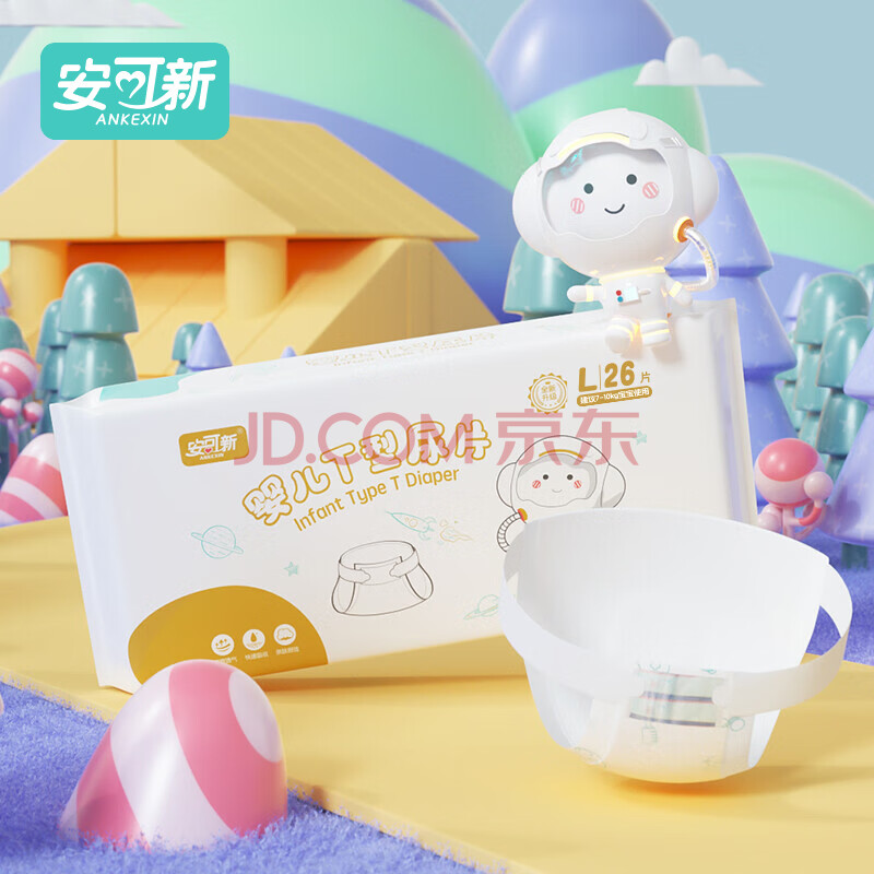 商品相册:安可新 婴儿升级一次性T型尿片 新生儿三角巾纸尿片裤拉拉裤 52片 L码第