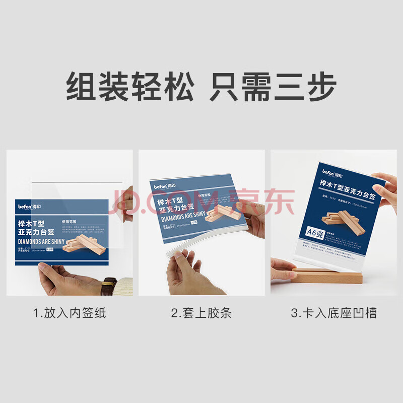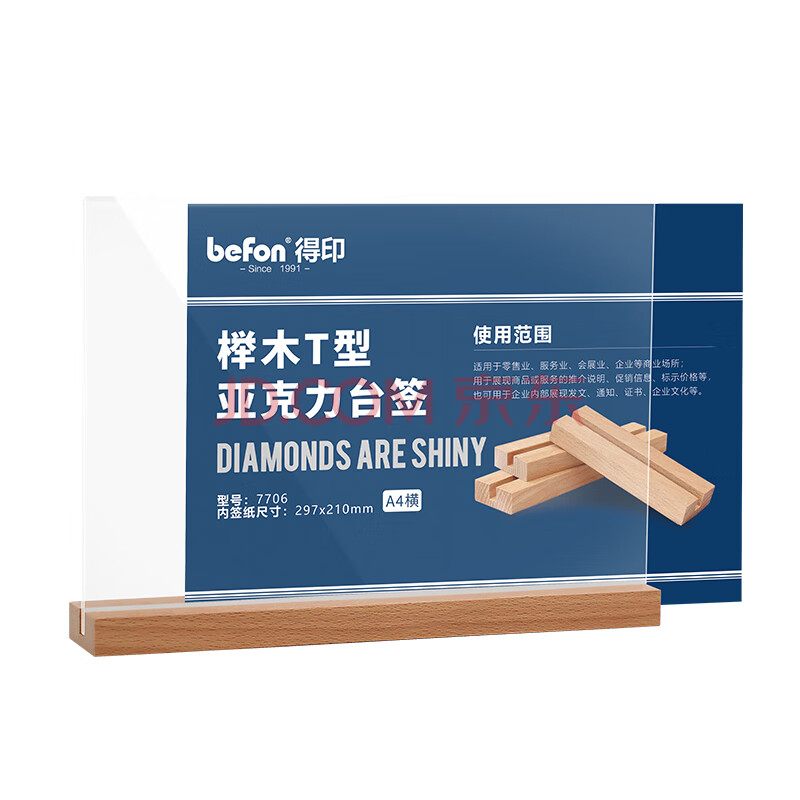 商品相册:得印精致榉木T型亚克力桌牌/桌牌架/台签3700立式广告牌价格牌标价签牌酒水餐牌桌卡A5横1/个第