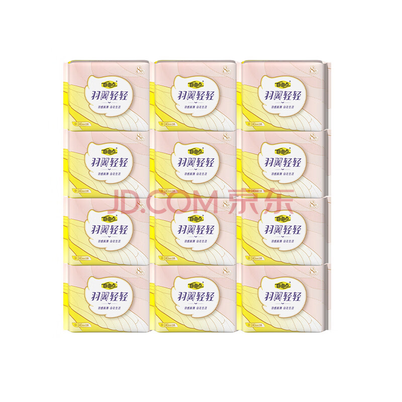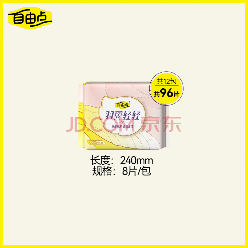 商品相册:自由点羽翼轻轻卫生巾赵露思同款超薄无感姨妈巾日用装240mm*12包 96片第