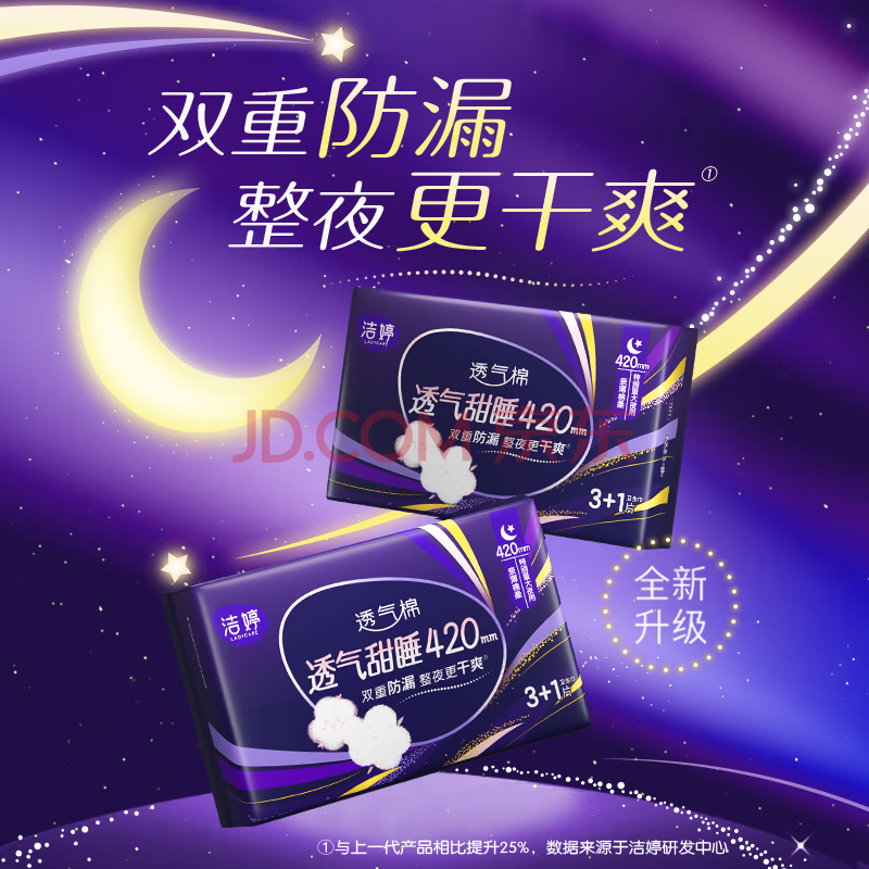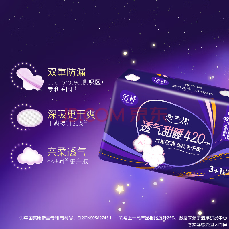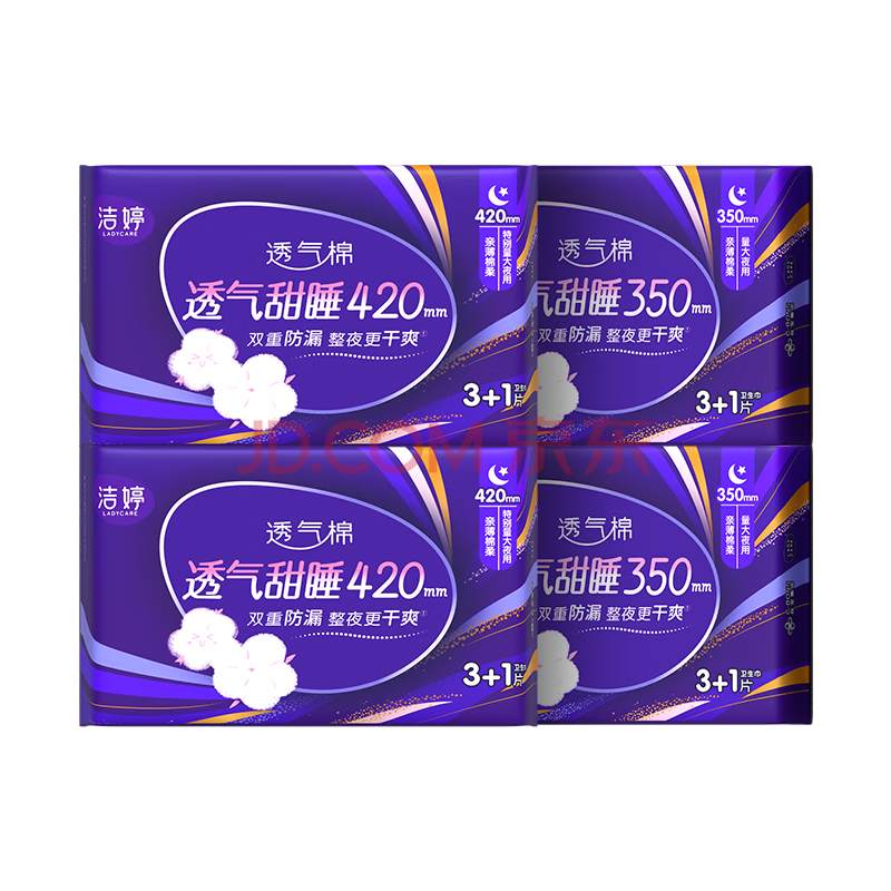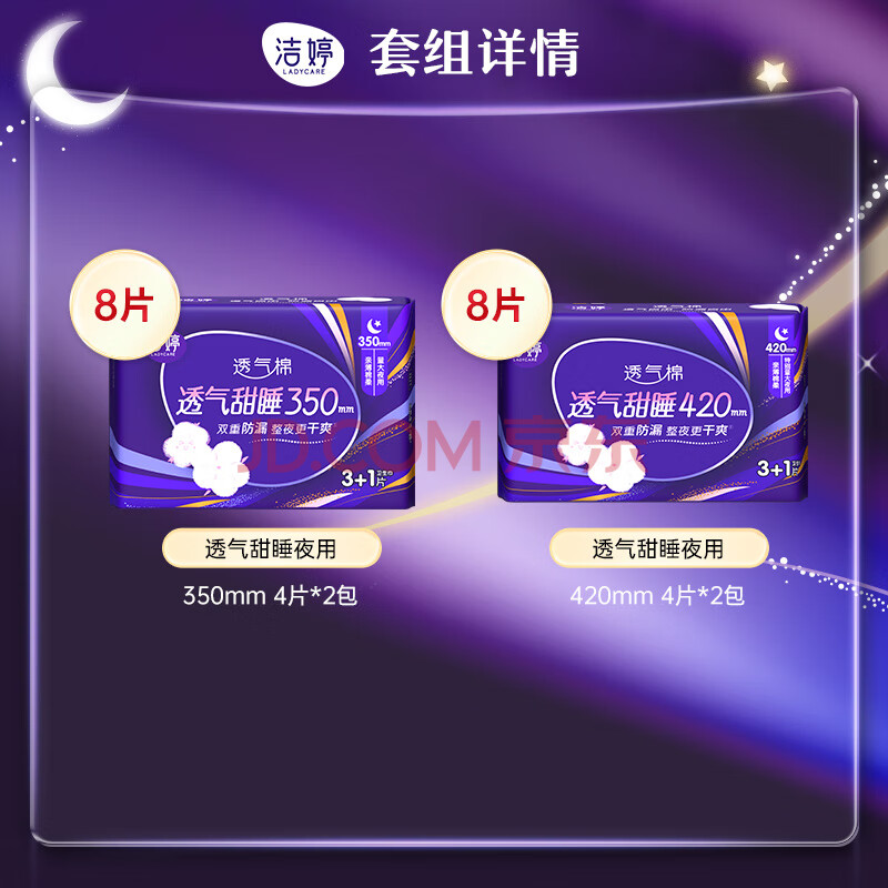 商品相册:洁婷夜用卫生巾透气甜睡加长防护防漏姨妈巾16片白色京东自营官方旗舰第