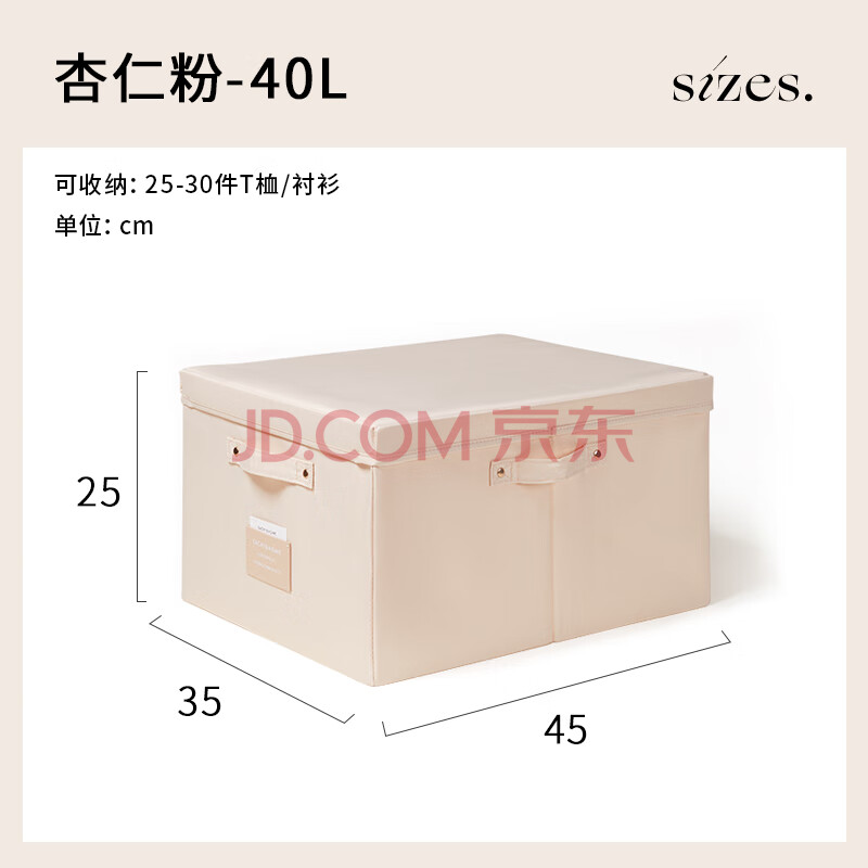 商品相册:EACHY衣服收纳箱布艺家用棉被衣物收纳箱可折叠衣柜整理收纳 40L杏仁粉第1张/共4