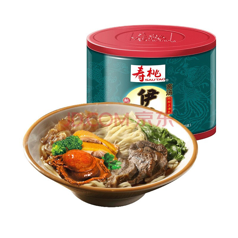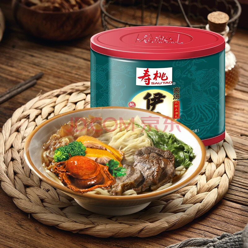 商品相册:寿桃牌 高汤伊面 鲍鱼清鸡汤味 内含调味包 240g/盒第