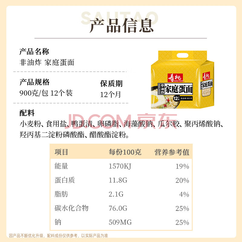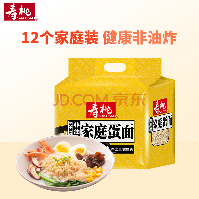 商品相册:寿桃家庭鸡蛋面非油炸速食低脂方便面条波纹面挂面家庭装12个面饼900g第