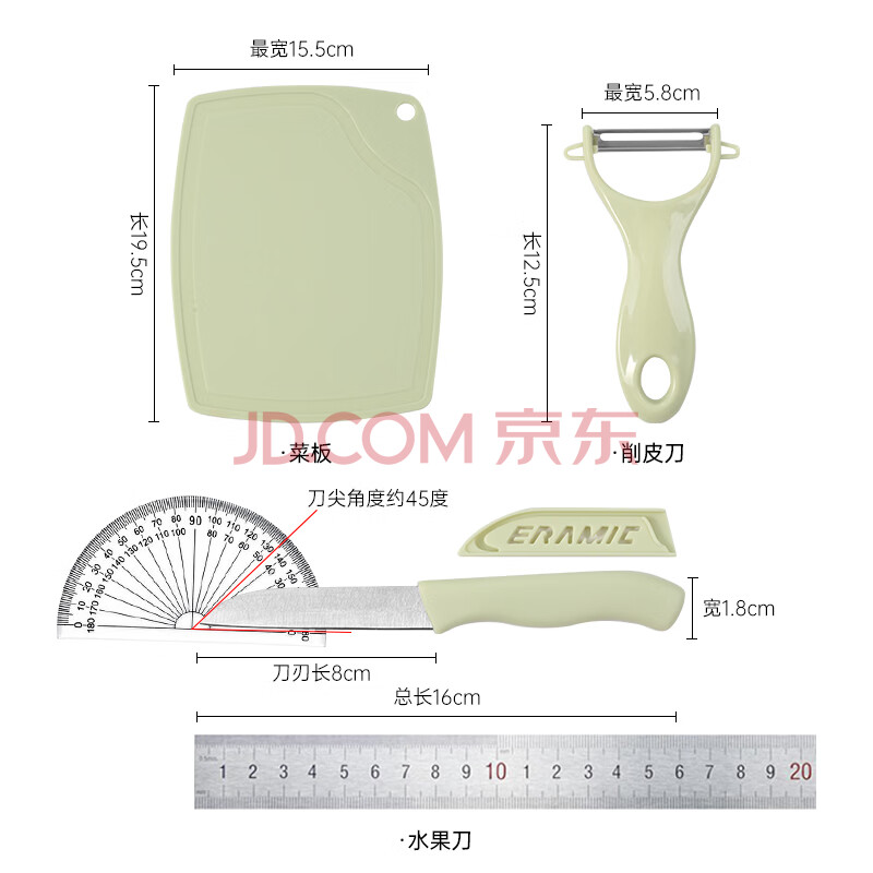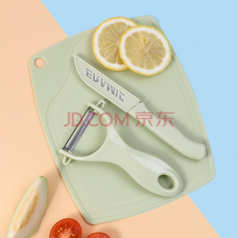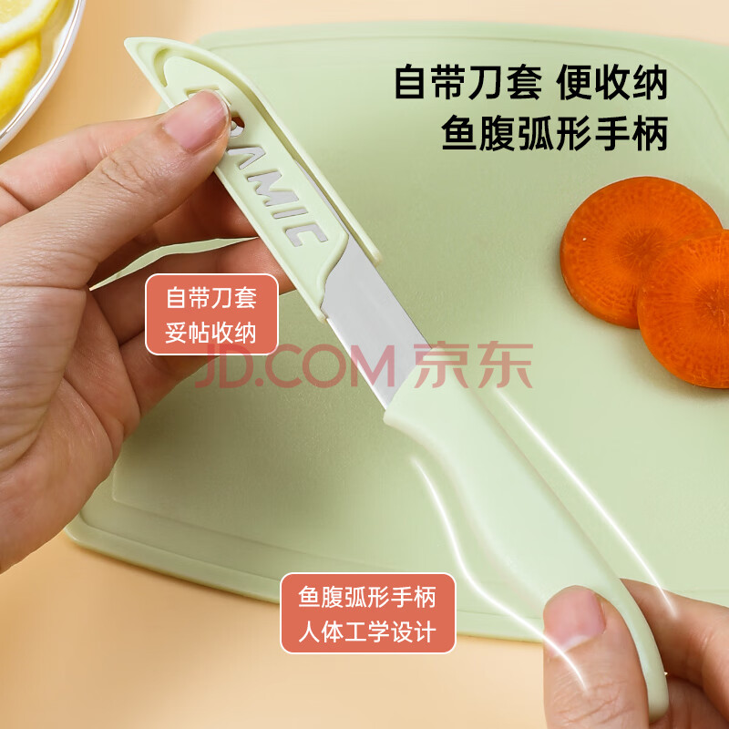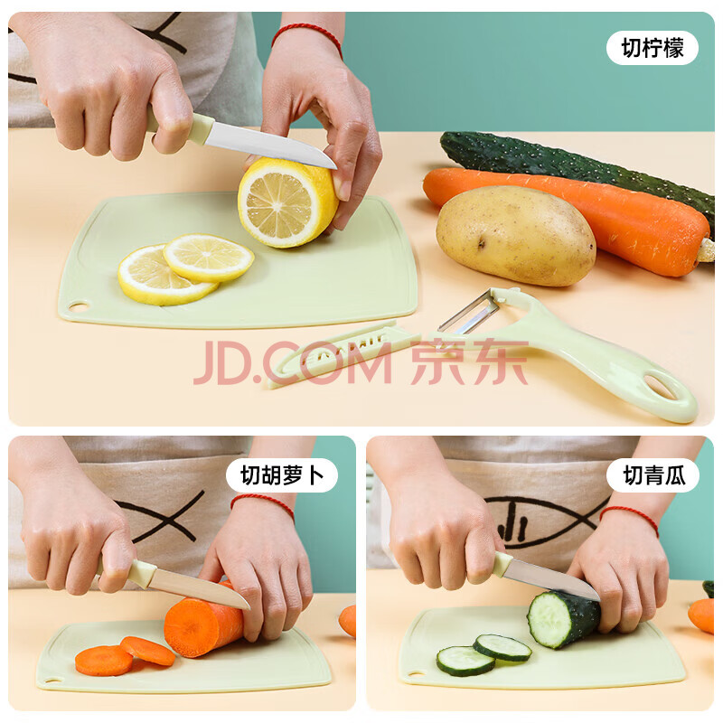 商品相册:贝瑟斯不锈钢水果刀套装便携菜板案砧板 削皮刀小具套装宿舍切水果3件套第