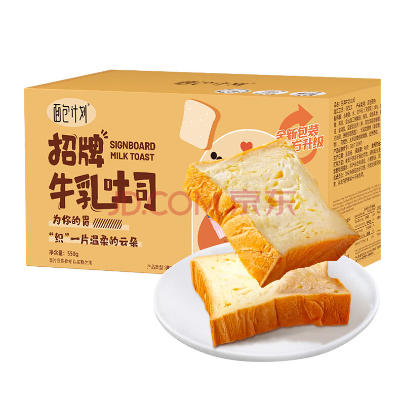 商品相册:面包计划厚切吐司面包550g 早餐黄油牛乳切片休闲零食蛋糕点心伴手礼物第