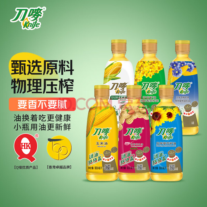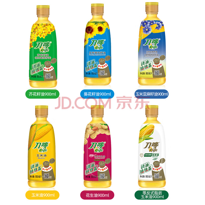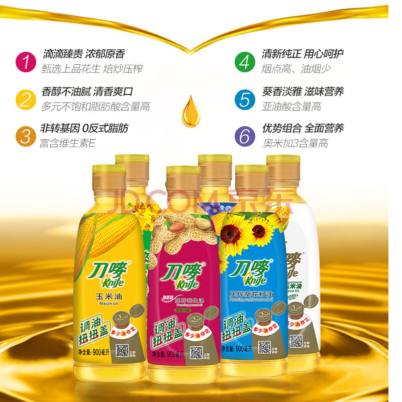 商品相册:刀唛(Knife)玉米油+花生油+葵花籽油+芥花籽油+调和油 0.9L*6 团购送礼第1张/共7