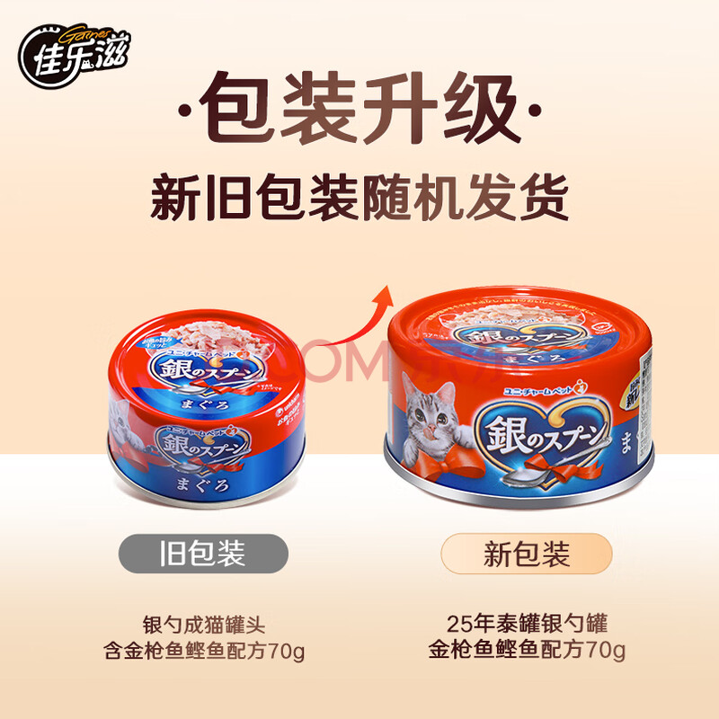 商品相册:佳乐滋银勺宠物猫罐头猫湿粮猫零食成猫幼猫泰国进口金枪鱼鲣鱼70g*48第