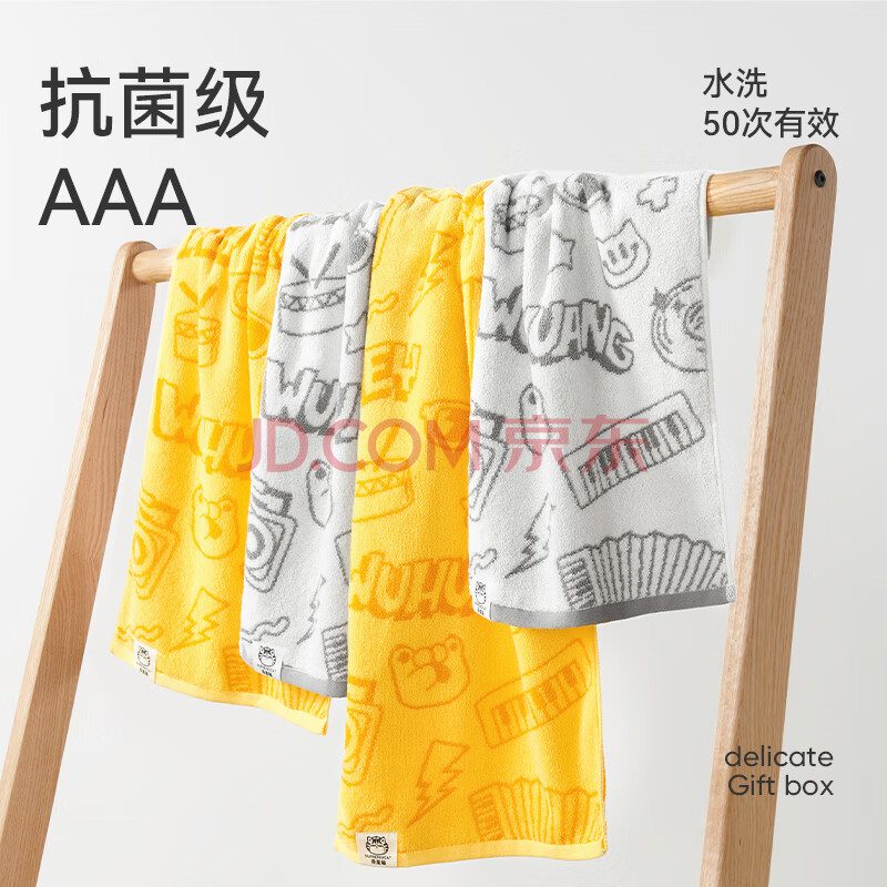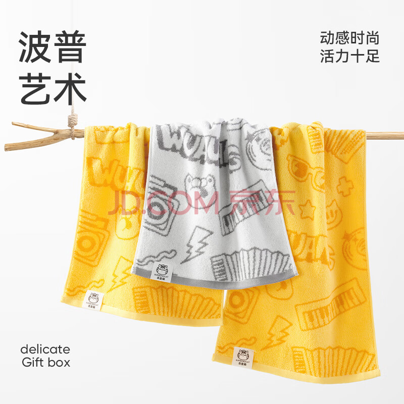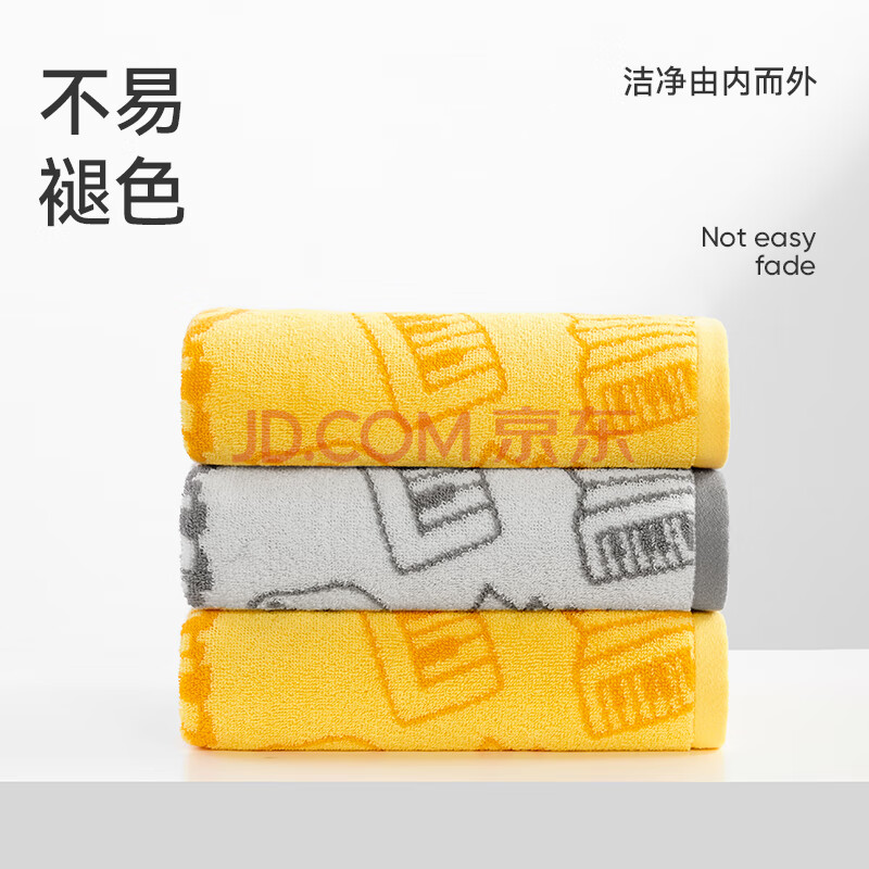 商品相册:洁玉110g新疆棉毛巾吾皇联名款3A级抑菌加厚洗脸巾2条装 黄1灰1第
