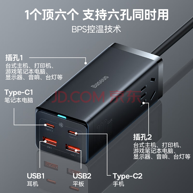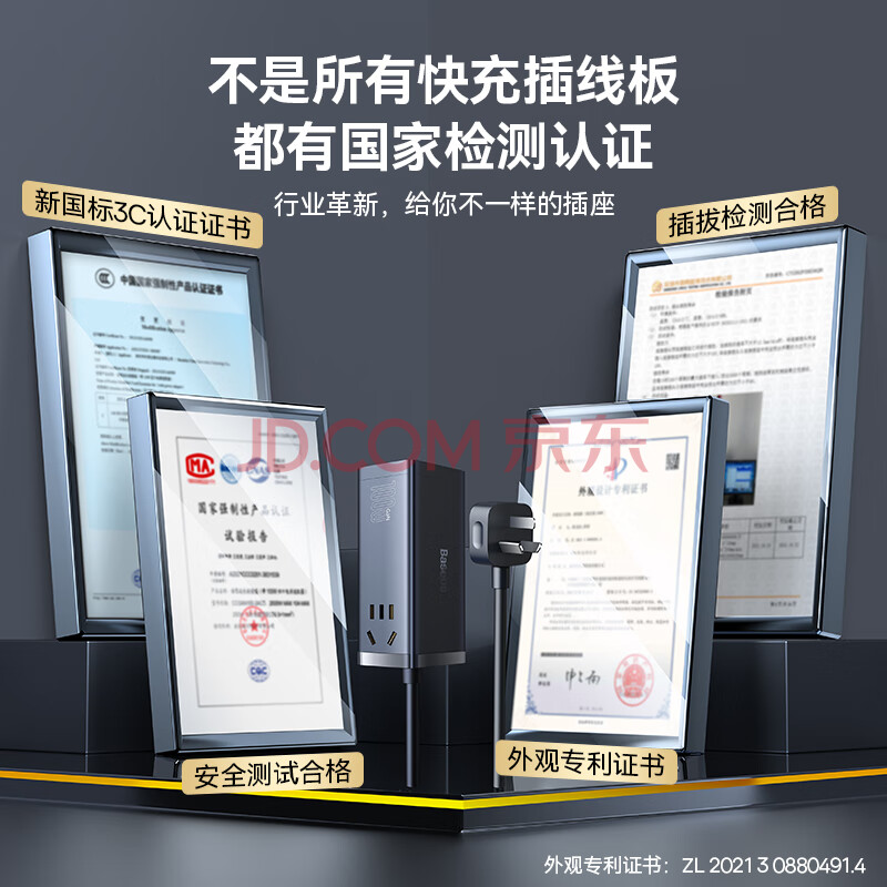 商品相册:倍思 100W氮化镓立式插排插座/桌面智能充电站/多功能充电器/拖线板/魔方轨道插线板第