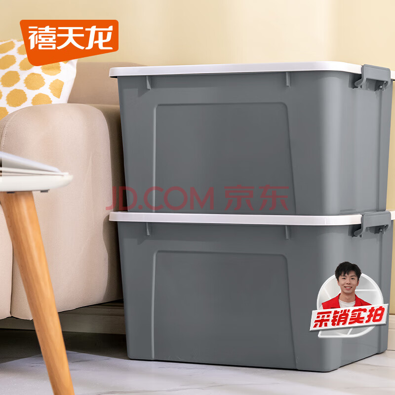 商品相册:禧天龙塑料衣物收纳箱玩具车载整理箱65L 灰色 1个装 不带轮第