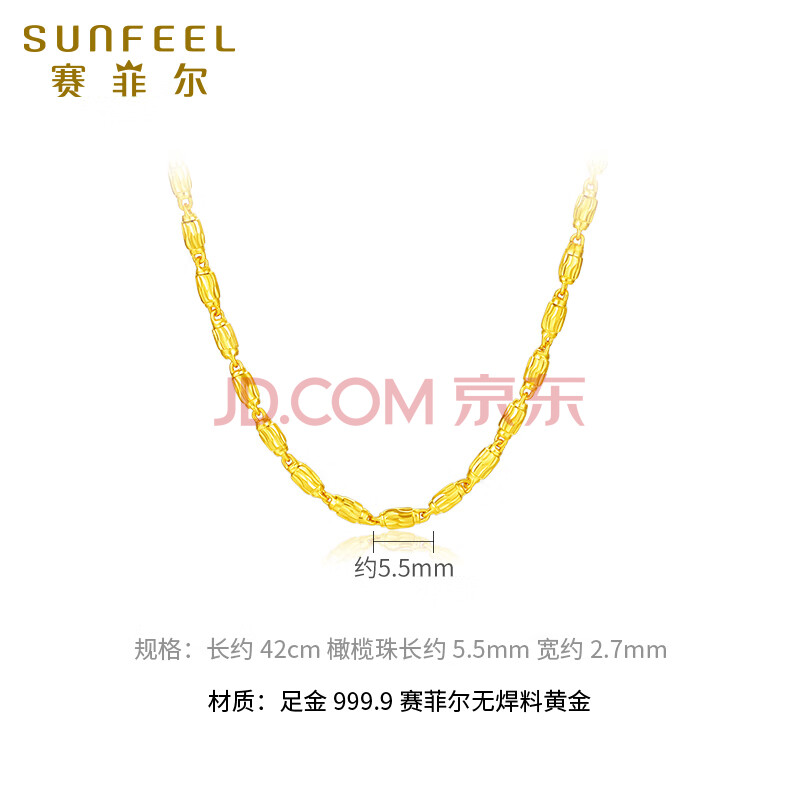 商品相册:赛菲尔黄金项链男女足金999.9全橄榄时尚金项链 约40cm 女款约8.5克第