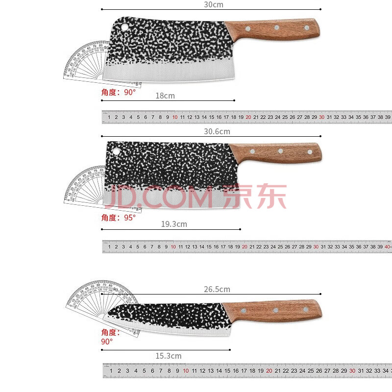 商品相册:拜格(BAYCO) 锻打锤纹木柄菜刀三件套斩骨刀菜刀水果刀不锈钢刀具套装 ZH7213第