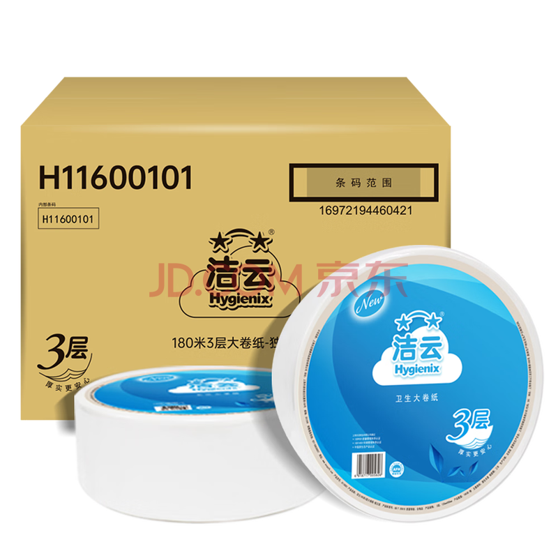 商品相册:洁云商用大卷纸3层180米*12卷 整箱卫生纸 厕纸大盘纸商场酒店纸巾第