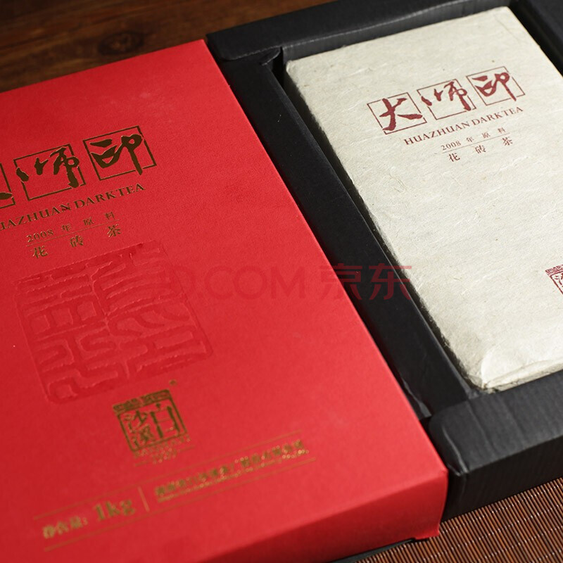 商品相册:白沙溪茶叶安化黑茶湖南特产2008年大师印花砖茶叶礼盒1kg送礼袋第