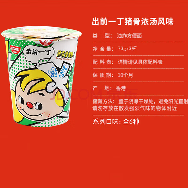 商品相册:出前一丁日清 香港进口方便面 猪骨浓汤风味杯面73g*3杯 泡面拌面零食中秋第