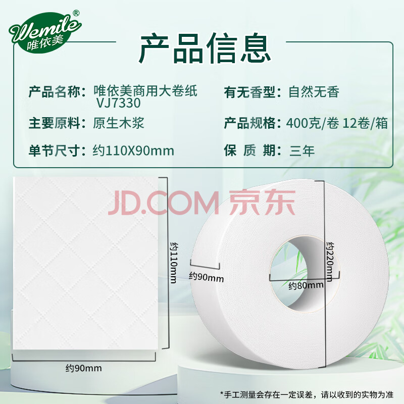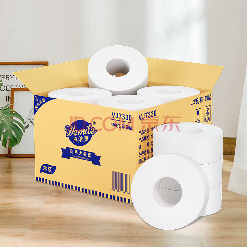 商品相册:唯依美大卷纸有芯4层400克*12卷商用大盘纸酒店卫生纸 整箱VJ7330第