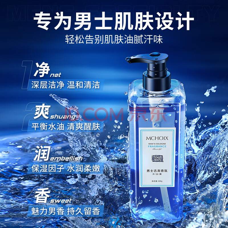 商品相册:魔香男士沐浴露持久留香72小时香体清爽保湿滋润古龙香沐浴乳液800g*2第