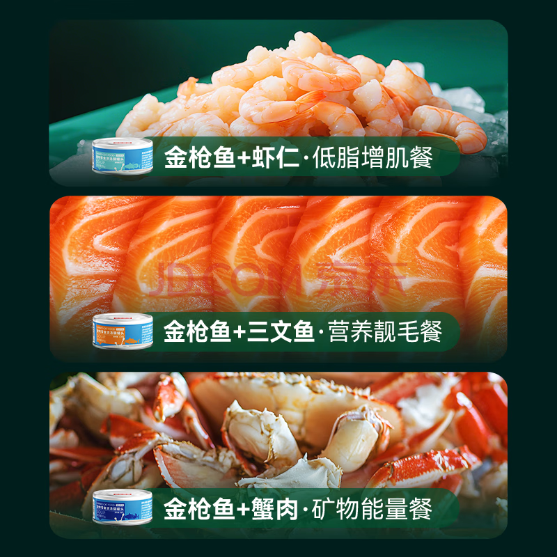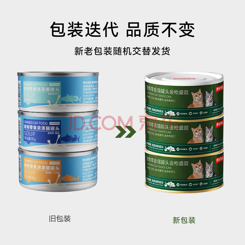 商品相册:京东京造 猫罐头白金枪鱼混合味85g*24 猫零食成猫幼猫营养补水鱼肉美毛第