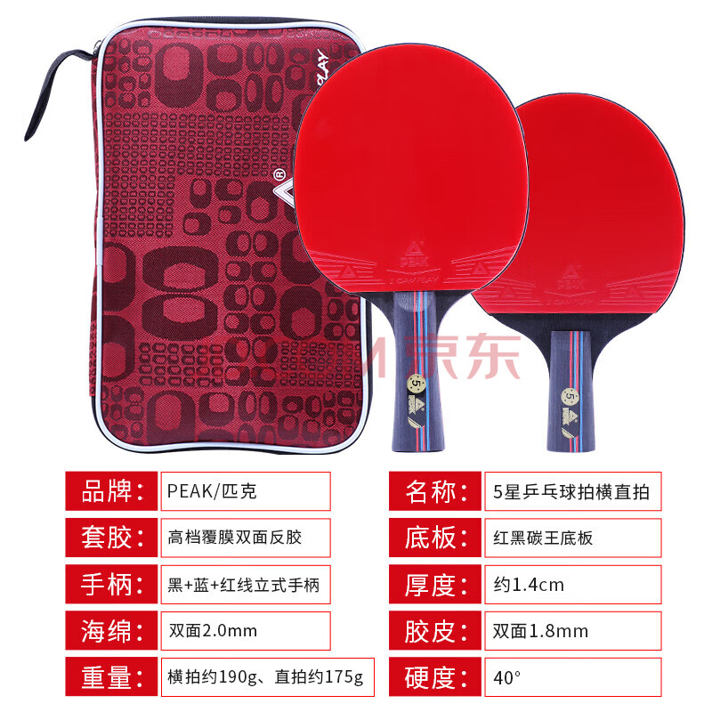 商品相册:匹克PEAK五星级乒乓球拍横直比赛成品对拍套拍含拍包球10只 5星横直第